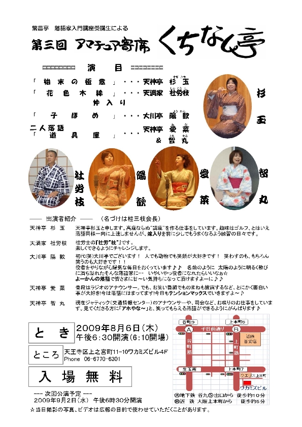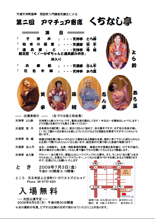 落語会「くちなし亭(http://tenmayakouchi.blog.shinobi.jp/Entry/3/)」は先般ご紹介したとおりです。