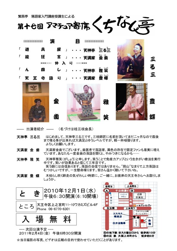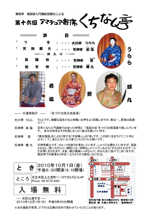 社団法人 上方落語協会のホームページに第七期(2010年10月~)の情報が掲載されました。