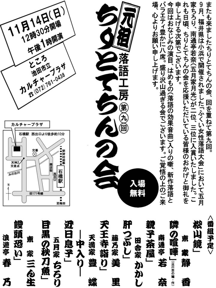 お稽古をつけていただいている桂米左師匠の「企画」の紹介です。